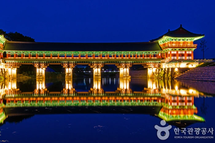 경상북도 경주시 교동에 있는 통일신라시대에 지어졌던 교량으로, 조선시대에 유실된 것을 2018년 4월 국내 최대 규모의 목조 교량으로 복원하였다. 경상북도 경주시 교동 163-1에 위치하는 통일신라시대의 교량(橋梁)으로, 조선시대에 유실되어 없어진 것을 고증을 거쳐 2018년 4월 복원을 완료하였다. 《삼국사기》에 의하면 통일신라시대 경덕왕 19년(760년)에 지어진 것으로 기록되고 있으며, 경주 월성과 남산을 연결하는 역할을 하였다. (자료출처 : 대한민국 구석구석 - korean.visitkorea.or.kr) 위치 : 펜션에서 총816m 차량 2분